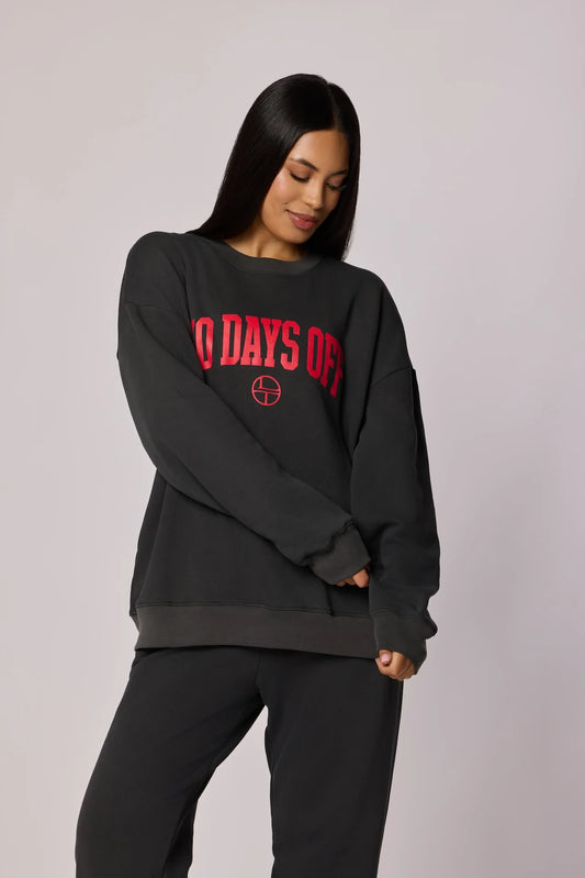 "NO DAYS OFF" Oversized crewneck Sweatshirt - Washed Black