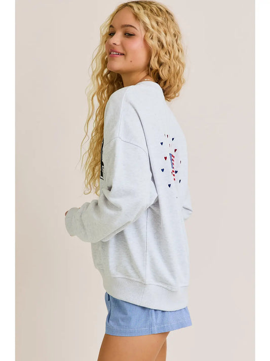 "USA" Long Sleeve Crew Neck Oversized Sweatshirt