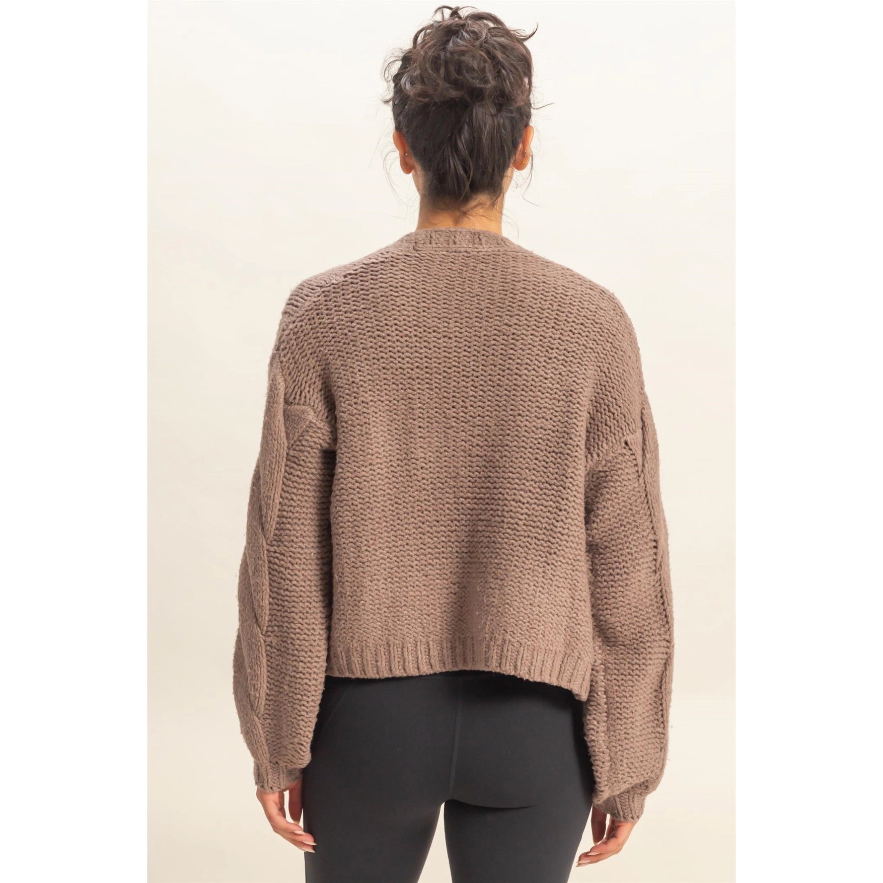 Embrace a relaxed silhouette with this cable knit cardigan sweater, perfect for versatile styling. Featuring a loose fit, drop shoulders, it ensures comfort and stylish. Ideal for layering over a turtleneck on chilly days, this piece complements jeans or leggings seamlessly, making it suitable for casual outings or cozy indoors.